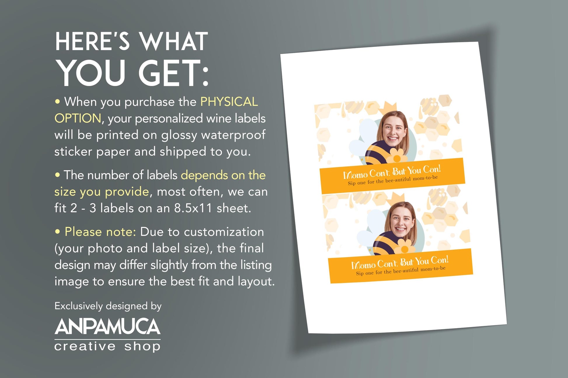 Celebrate your baby shower with this Personalized Bee Baby Shower Champagne Label – a fun and custom tag that reads “I Can’t Drink This But You Can.” Perfect for pregnancy announcements or baby showers, this editable champagne label makes a unique gift for guests or friends. Choose between printed or digital files to match your needs. ***If you choose digital, note that NO physical product will be shipped.